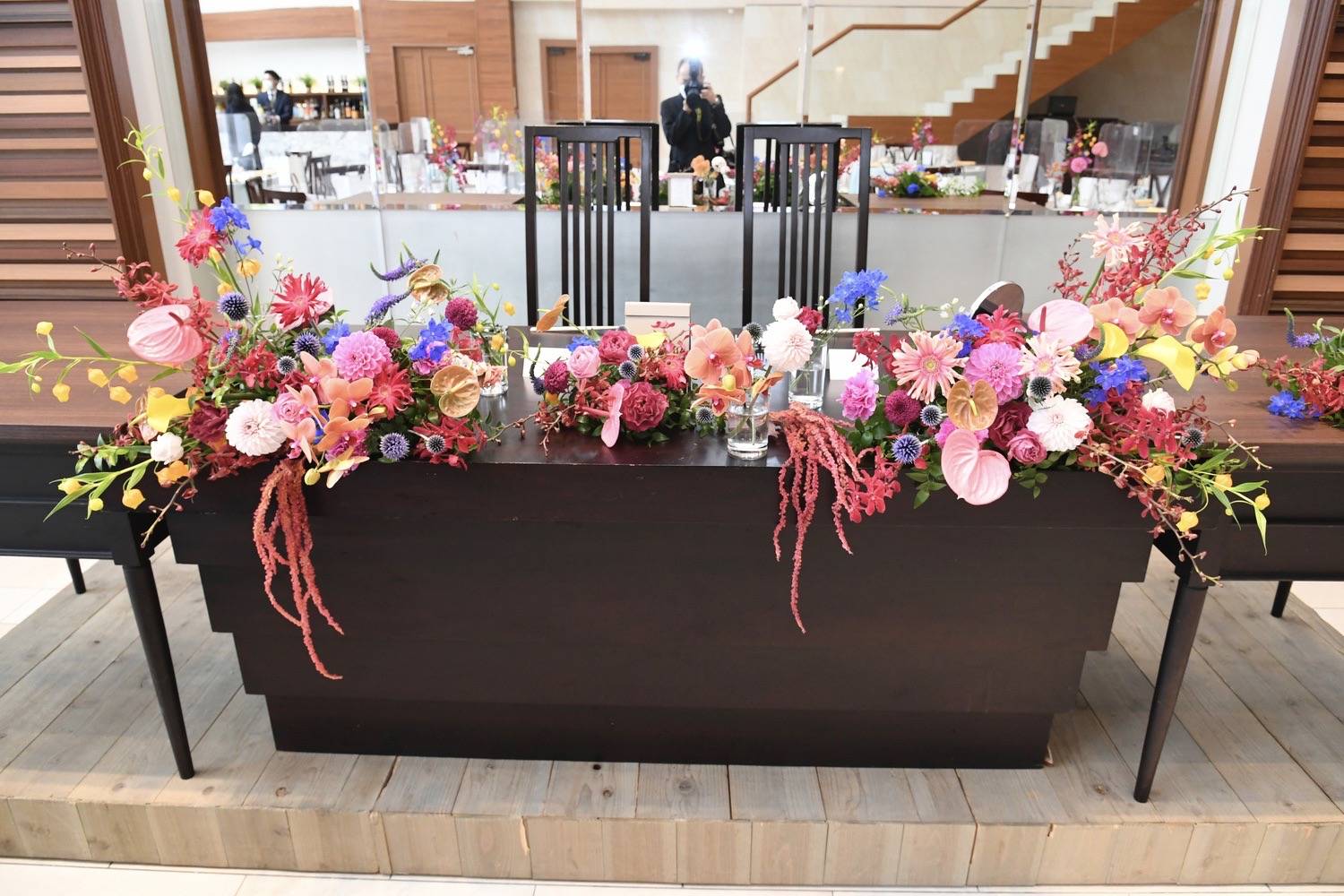 お二人が座っている会場のお花を見てきた